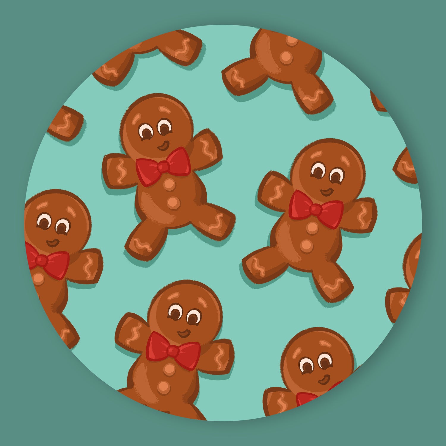 Meet your new favourite coaster! These delightful gingerbread pals wear cheerful red bows against a calming aqua backdrop, bringing playful joy to your table.